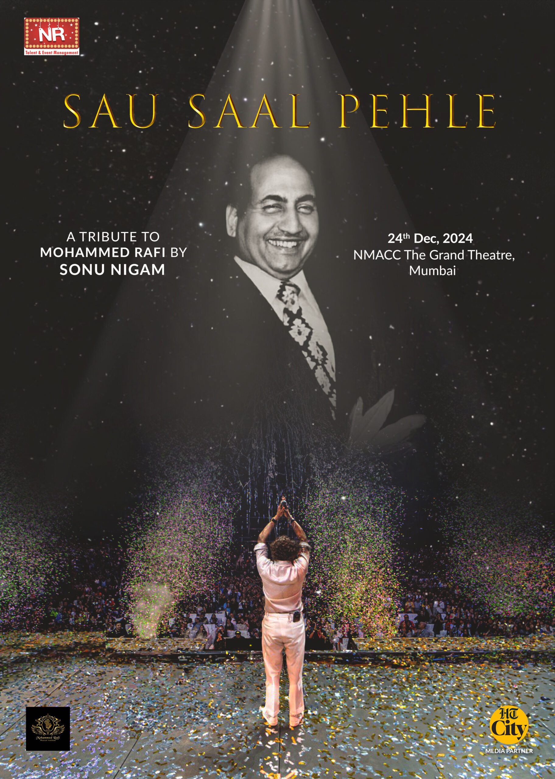 Sau Saal Pehle marked a poignant celebration of Mohammed Rafi’s 100th birth anniversary, with Sonu Nigam bringing his timeless melodies alive at NMACC, Mumbai.